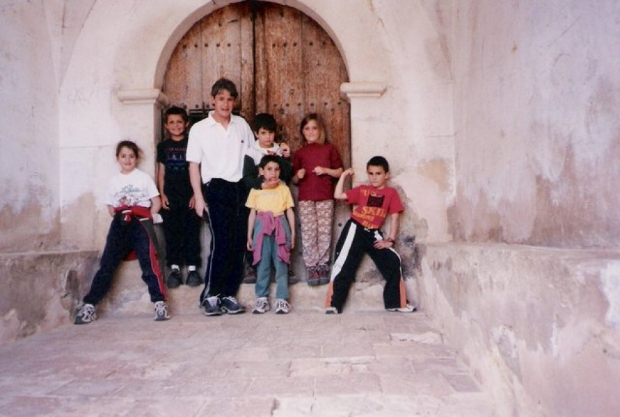 Alumnos de Villarluengo en la Ermita de San Cristobla.Mayo del 2.000