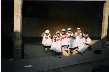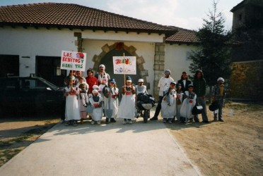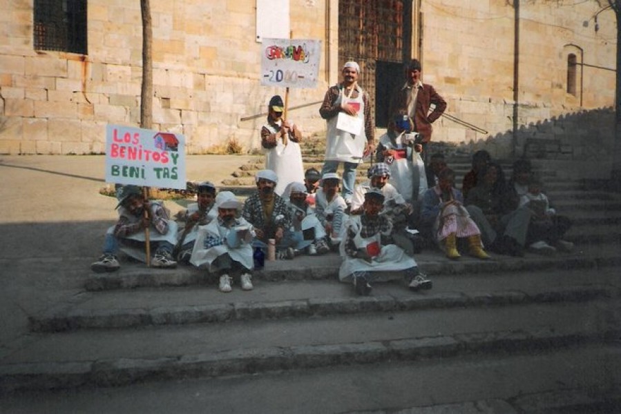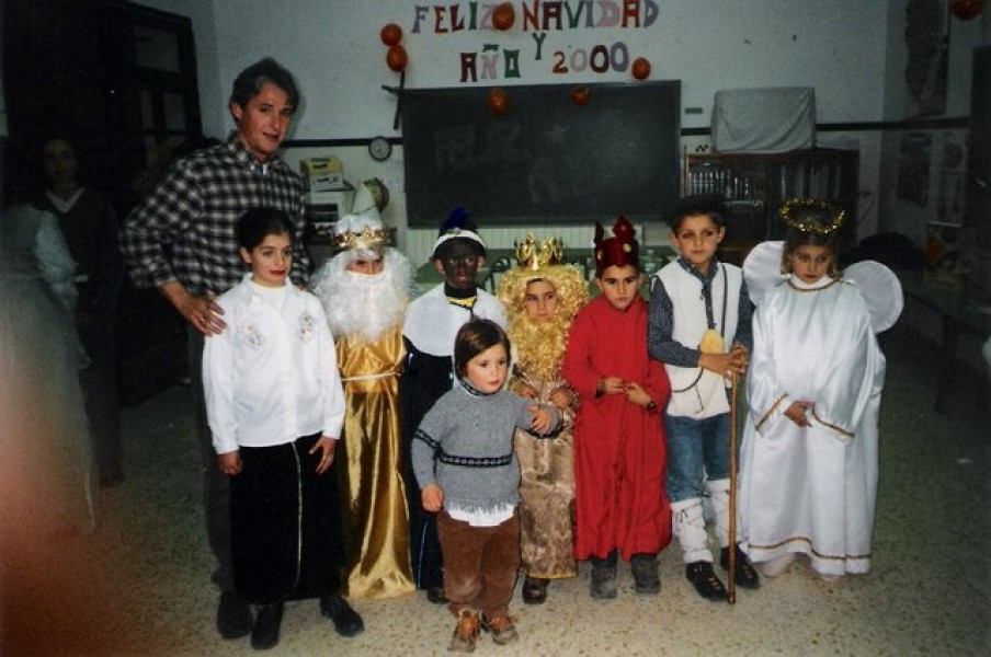 Alumnos y profesores de Villarluengo celebrando el carnaval del 2.000