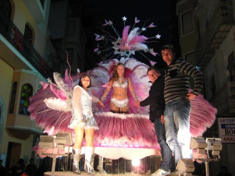 La reina de la comparsa de Silvia. En la foto: Silvia, la reina, Ruben y Nestor