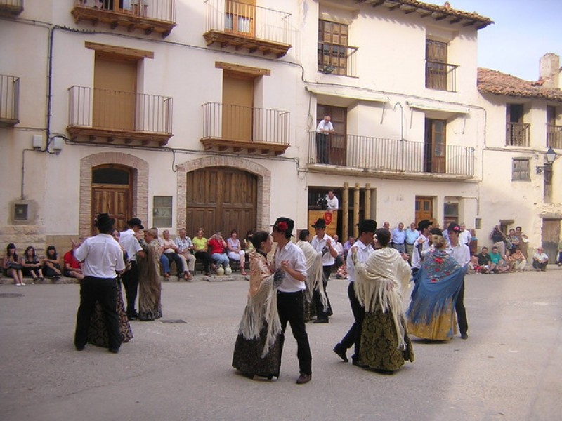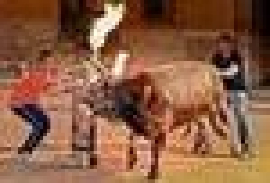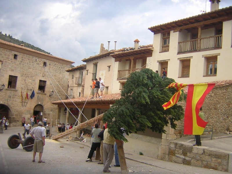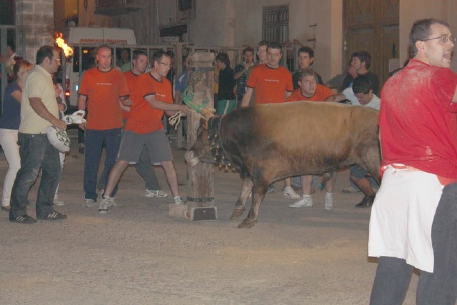 A la derecha los futuros emboladores de villarluengo Alejandro y Luis colocando la bola al toro